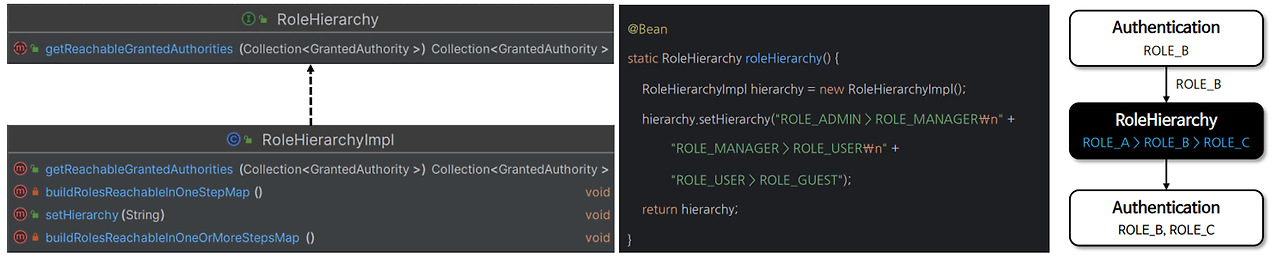 - ROLE_B 를 가진 모든 사용자는 ROLE_C 및 ROLE_D도 가짐