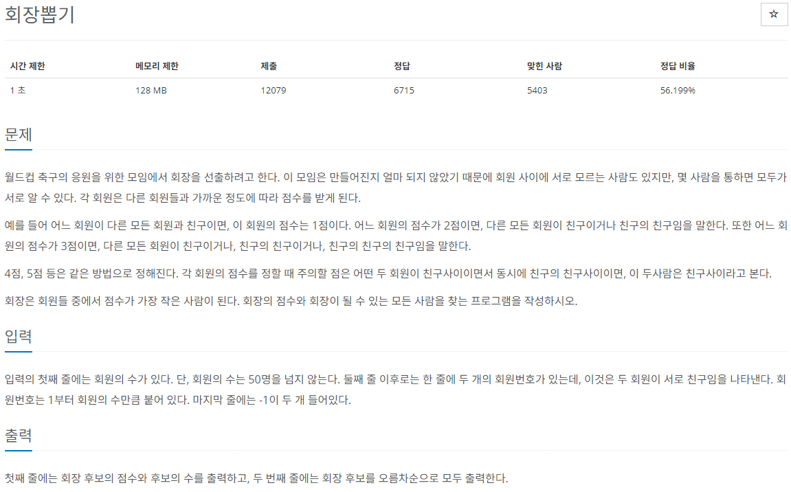- 친구 관계 중 관계의 점수가 낮을수록 가까운 사이의 친구가 많다는 의미 ⇒ 회장 후보