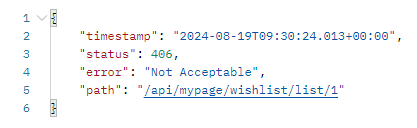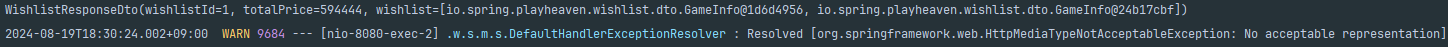 - 구글링 결과 HttpMediaTypeNotAcceptableException는 클라이언트의 Accept 헤더와 서버의 응답 형식이 일치하지 않을 때 발생한다고 함