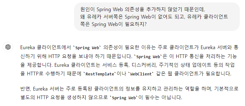 - 그렇다면, 왜 Eureka Server는 Spring Web이 없이도 잘 되고, Eureka Client는 Spring Web이 있어야만 할까?