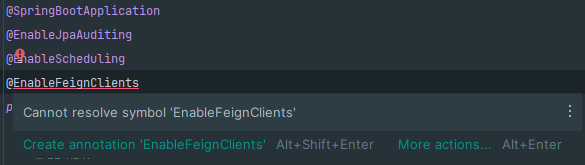 FeignClient를 사용하기 위해서 의존성을 추가하였으나, 어노테이션이 인식되지 않음