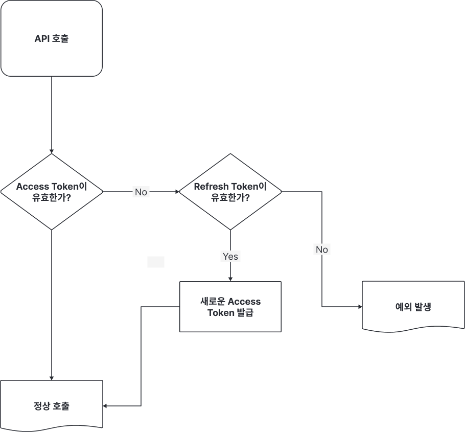 - 서버는 DB에 저장된 Refresh Token과 비교하여 유효한 경우 새로운 Access Token을 발급하고, 만료된 경우 사용자에게 로그인을 요구