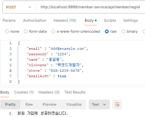 - 응답의 콘텐츠 유형을 text/plain으로 설정