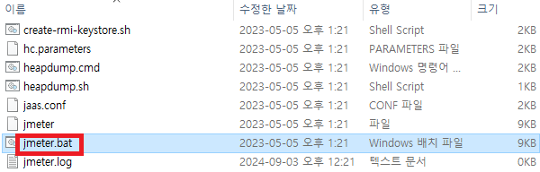 - bin 폴더 안에 있는 jmeter.bat 파일 실행