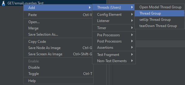 - 좌측 테스트 플랜 → 마우스 우 클릭 → Add → Thread(Users) → Thread Group