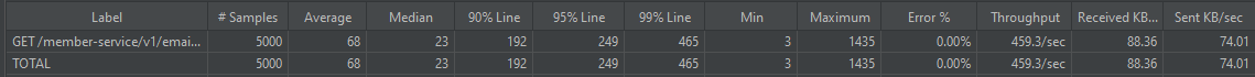 - Ex) Median 23은 모든 요청 응답 시간 중 절반이 23ms 이하, 나머지 절반이 23ms 이상