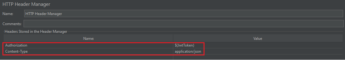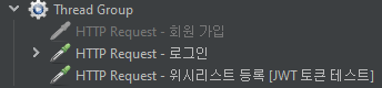 - 아래와 작성 시 HTTP Header Manager에서 설정한 것 처럼 모든 요청에 추출한 토큰값 추가