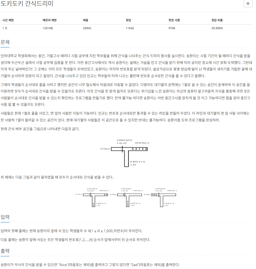 - 즉, 번호 순서대로가 아니면 간식을 받지 못함 → Sad 출력