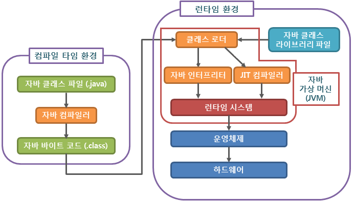 - 즉, 최초 실행 시에는 인터프리터만을 사용하여 프로그램을 즉시 실행하고, 이후 프로그램 실행 중 JIT 컴파일러로 자주 호출되는 부분을 변환하여 실행 성능을 향상