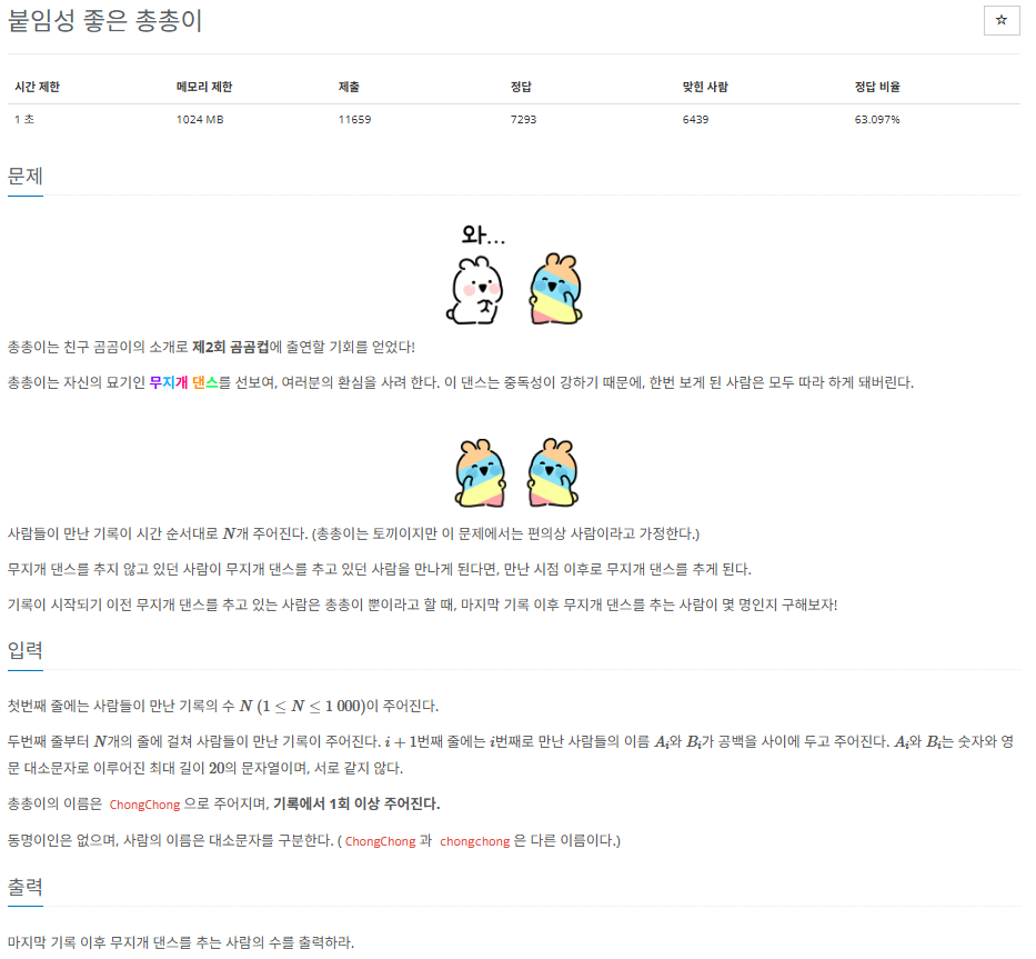 - 사람들이 만난 기록이 시간 순서대로 N개 주어짐