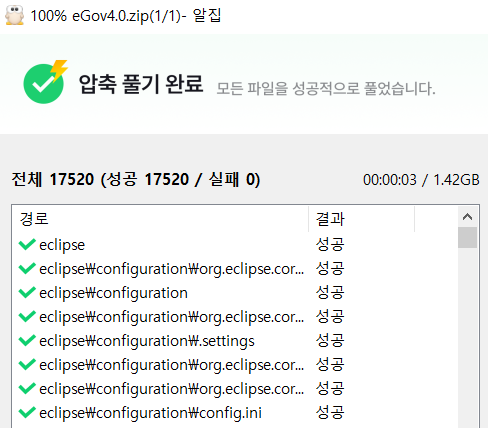 - 전자정부프레임워크 문의의 답변으로는 반디집 또는 7-zip을 사용하여 압축을 해제하라고 함