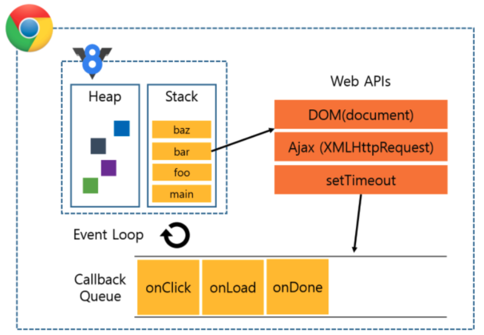 - 요청 완료 시 Web API는 콜백 함수를 Callback Queue(Task Queue)에 추가