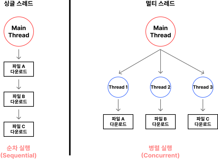 - 하나의 스레드만을 사용해 코드가 실행된다는 의미