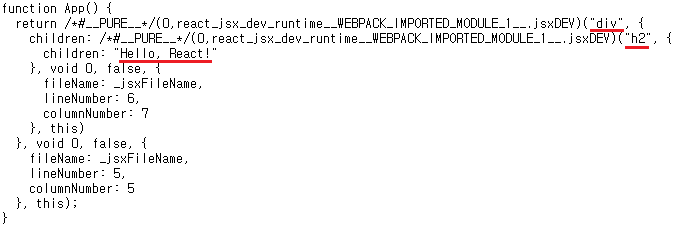 - 결과적으로 App.js에서 정의된 HTML 구조가 브라우저 화면에 표시