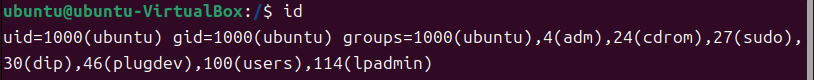 # 현재 사용자의 UID, GID, 그룹정보를 확인하는 명령어
