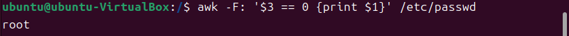 awk -F: '$3 == 0 {print $1}' /etc/passwd