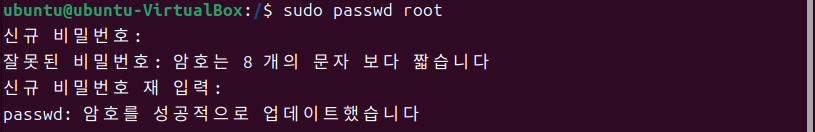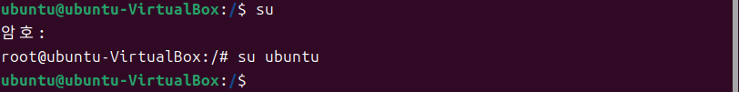 - sudo(superuser do) : 현재 계정에서 root권한을 이용하여 명령어를 실행할 때 사용하는 명령어