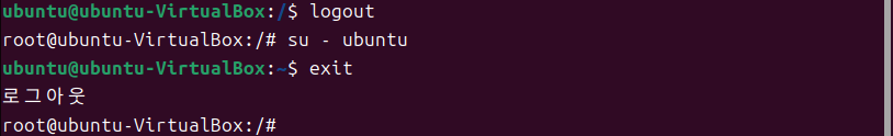 # 로그아웃을 하지 않고 다른 사용자의 계정으로 전환 (계정명 미입력이면 root로 로그인)