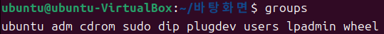 # ubuntu adm cdrom sudo dip plugdev users lpadmin wheel