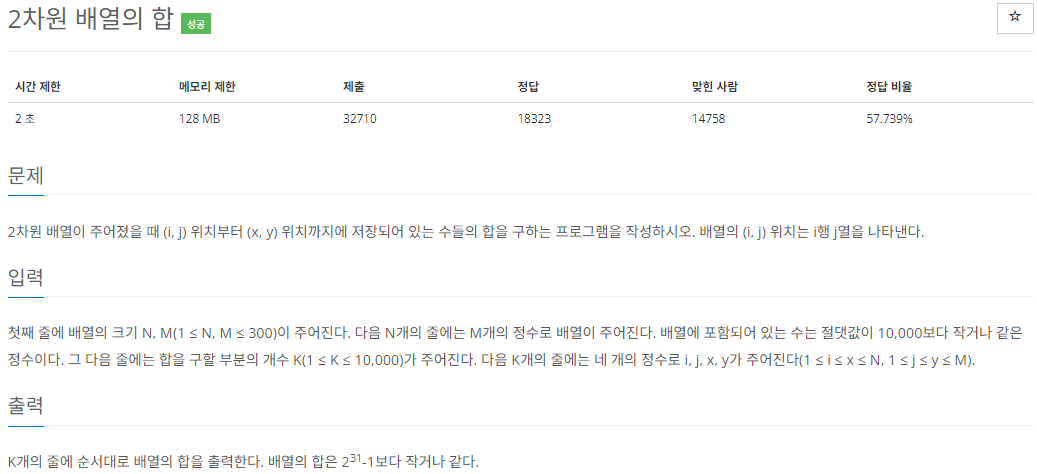 - 넷째줄부터 누적 합을 할 좌표 가 주어짐[i , j] ~ [x, y]
