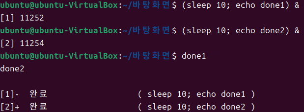 # 괄호는 두 개 이상의 명령어를 연결하고 전체를 백그라운드에서 돌리기 위함