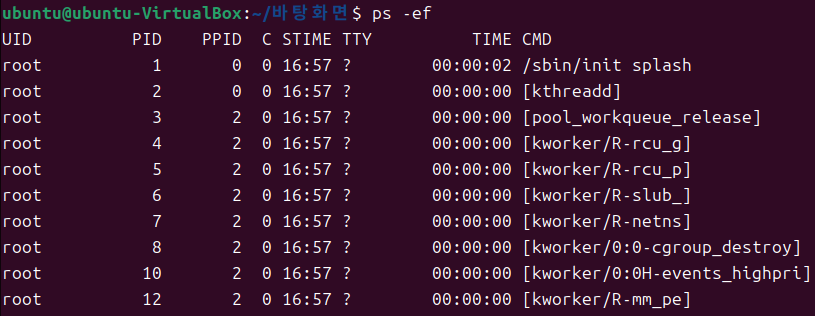 - 부모 프로세스와 자식 프로세스의 관계 확인하려면 ps -ef