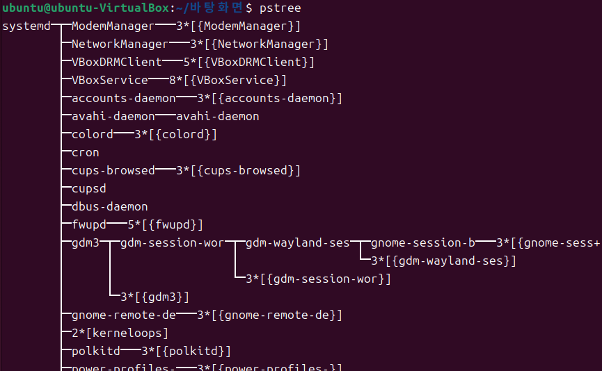 - 커널은 이러한 프로세스를 관리하기 위해 각 프로세스에 PID(Process ID)를 할당하며, 시스템에서 가장 먼저 실행되는 init(systemd) 프로세스는 항상 PID 1을 가짐