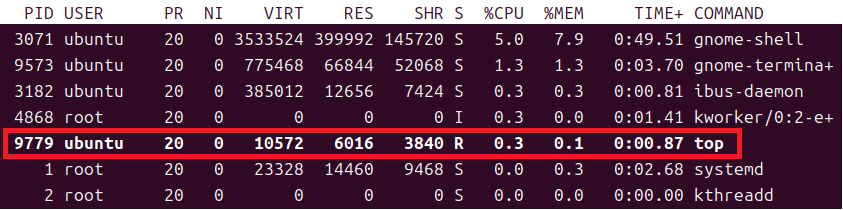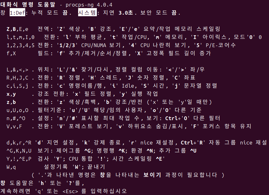 | PRI | 프로세스의 우선 순위 (높은 값이 낮은 우선 순위) |