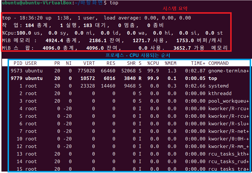 | %CPU | CPU 차지율 |