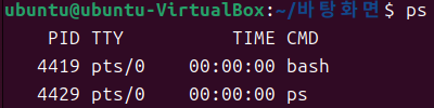 - 따라서 현재 시스템에서 실행 중인 프로세스에 관한 정보를 출력하여 사용자에게 정보를 제공하는 명령어가 필요한데 이때 사용하는 명령어가 ps