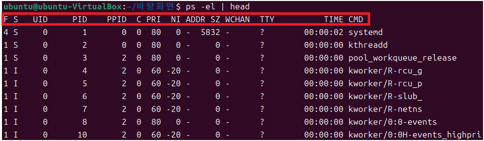 | PPID | 프로세스 부모 프로세스의 PID |
