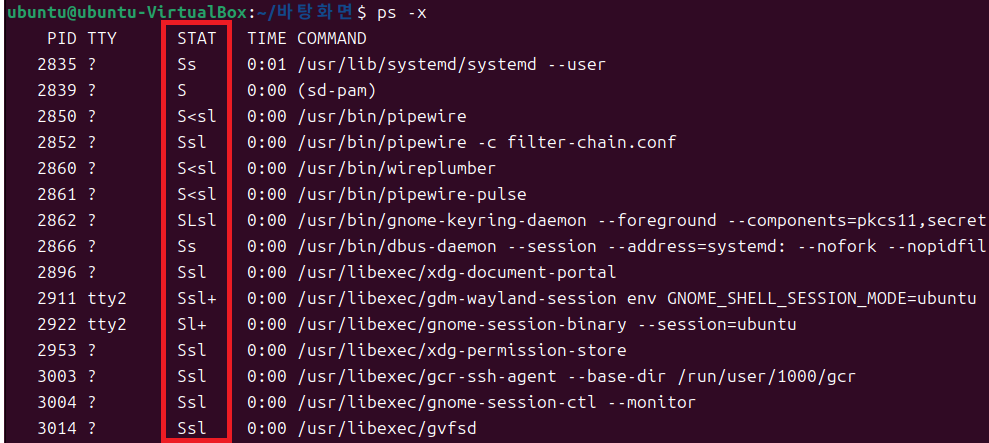 프로세스의 현재 상태 ( ps -x )
