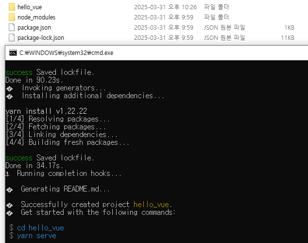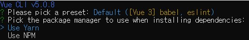 - Vue CLI가 Yarn 패키지 매니저를 사용해서 패키지를 설치하는데 네트워크 속도가 느려서 패키지 다운로드가 오래 걸릴 수도 있다는 경고