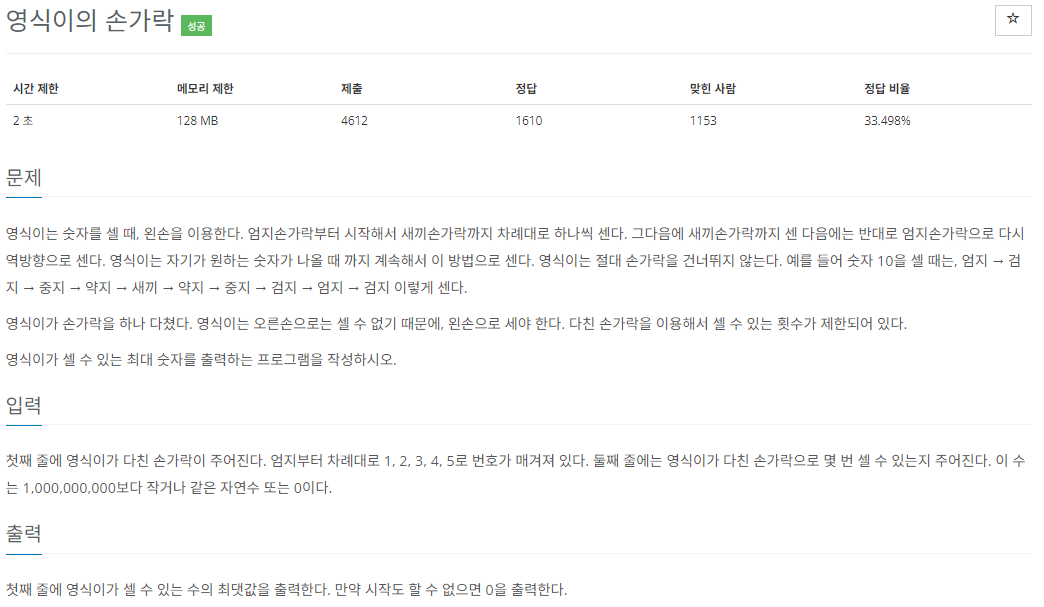 - 다친 손가락으로 셀 수 있는 수는 10억이하로 int가 아닌 long 선언 필요