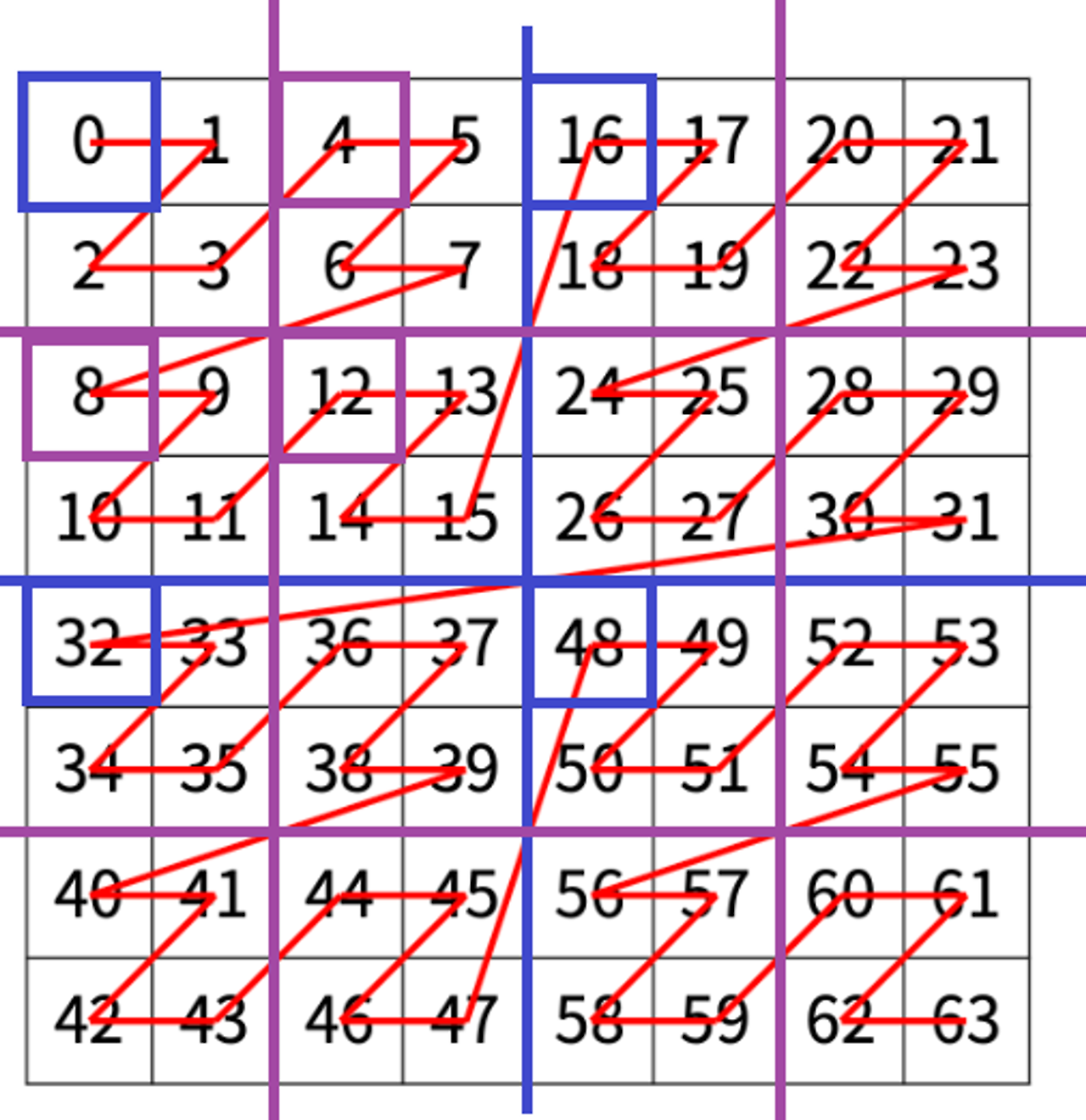 - 1사분면 시작값 ⇒ (2^N / 2) * (2^N / 2) * 0