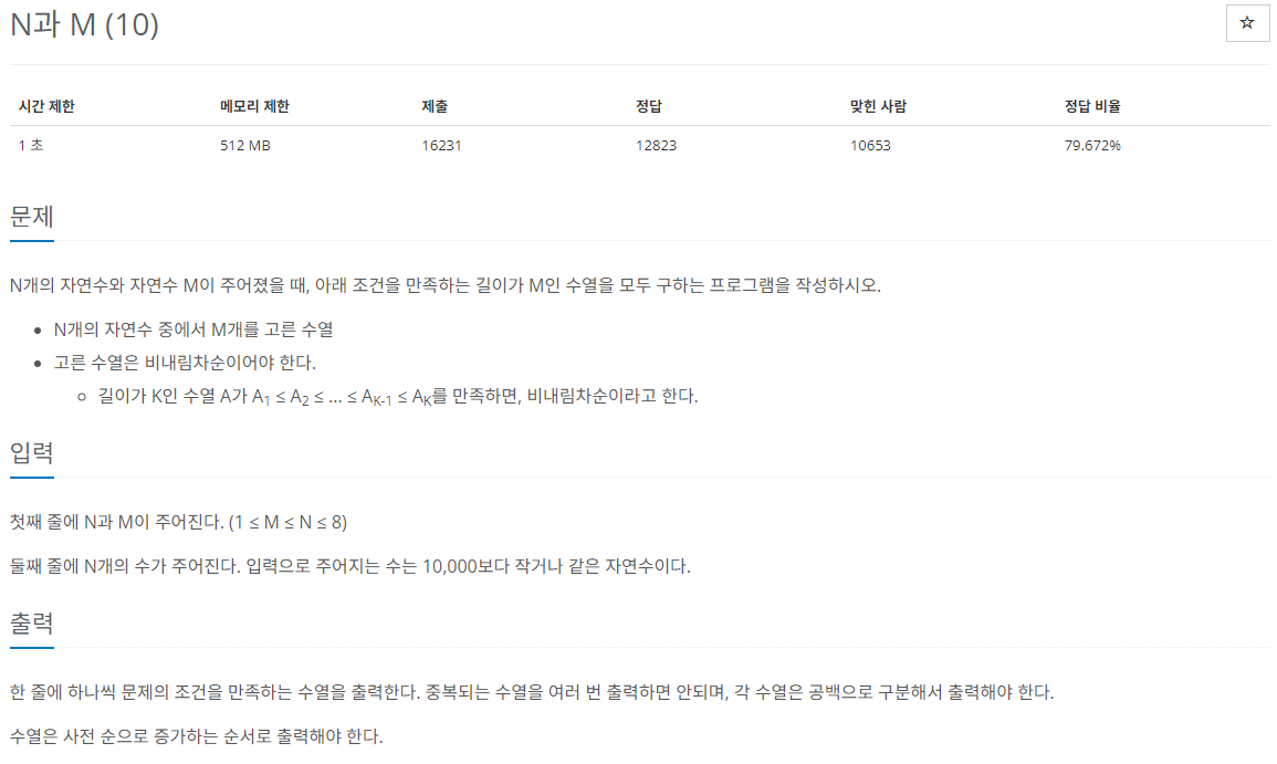 | [Java] N과 M 8 [15657번] (0) | 2024.07.22 |